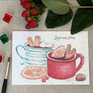 Chocolat et vin chauds – Carte à planter A6 (Fleurs)